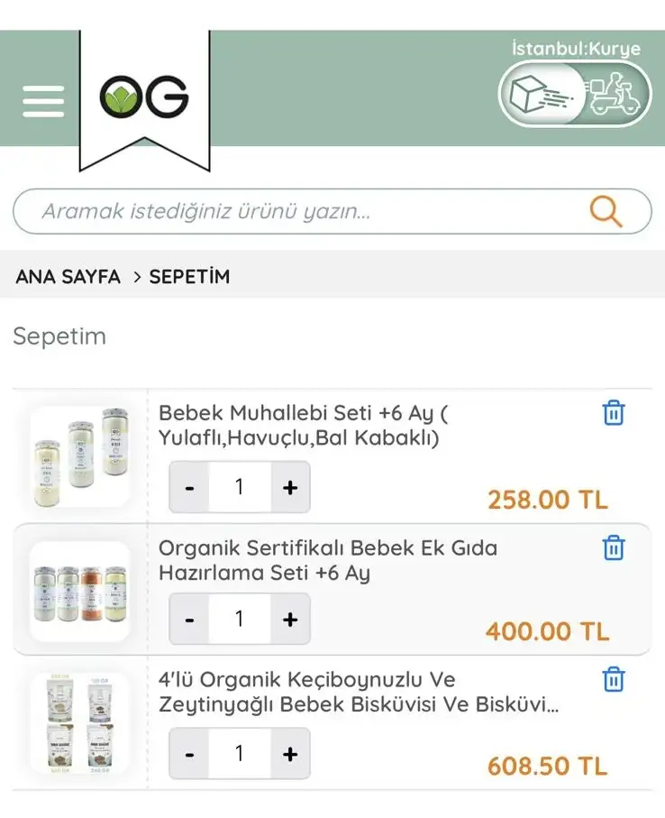 Og organikten bebek irmiği tarhanası falan sipariş verdim.