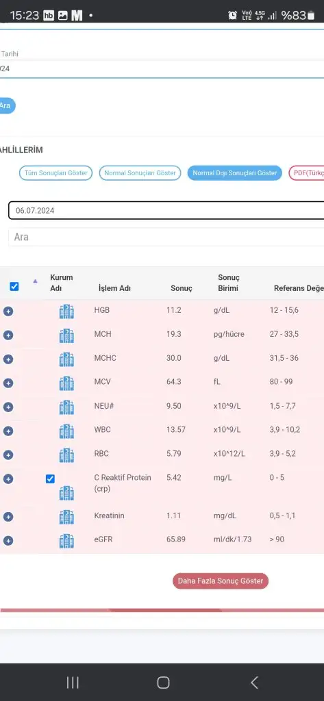 Canim su şekilde ekte paylaşayım normal dışı değer olarak