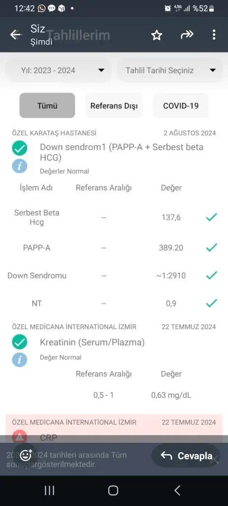 Ben de kararsız kalmıştım. Bursadaki doktor yorum yapmamıştı, ikisi de olur gibi konuşmuştu ama Erzurum’daki direkt 2li 3lü artık çok eskide kaldı geçerliliği çok düşük o yüzden nipt yaptırın dedi. Biz de tam 10 haftalıkken kan verdik ama bugün arayıp yeterli fetal fraksiyon olmadığını söylediler kandaMerhaba, genetik tanı nipt test yaptıracak mısınız? Kararsız kaldım gerekli mi gerçekten?