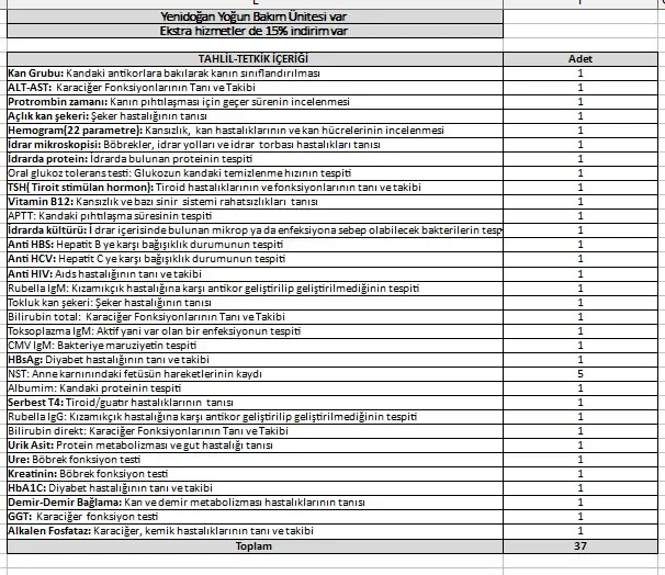 Hastaneye yukarıdaki iki sayfalık liste verilip bunları birim fiyat olarak tek tek kaç tl ye yaptırabilirim diye sormalı. 🤔