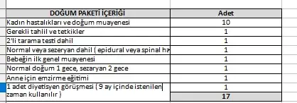 Paket satın almanın gebe için avantajı olmalı ki tercih etsin. Hem fiyatlar bu kampanya ile daha uyguna gelmeli, hem de gebelikte rutinler tam yapılmalı. Öyle ki anne o yapıldı, bu yapılmadı. Onu nerede, nasıl, kaça yaptırırım diye düşünmesin. Pratik olsun.