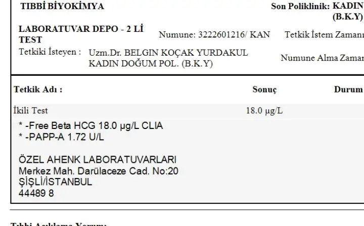 Yirmi dk falan sakin sakin bakti sonra bı kağıt veriyor kan almaya gidiyorsun kağıdı veriyorsun kanı veriyorsun bir haftaya çıkıyor, direkt kana da gönderebilir gerisi onların sistemine bağlı, kan veriliyor ve normal ultrason yani, ayrıca soran olmustu aç tok fark etmiyor