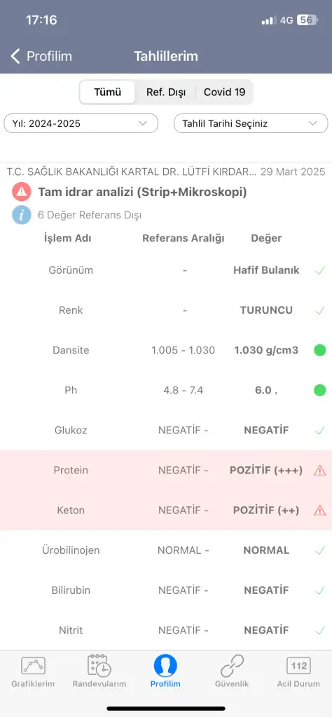 Perşembe dr a gidip 24 saatlik idrarda bakılsın isteyeceğim. 🤷‍♀️
