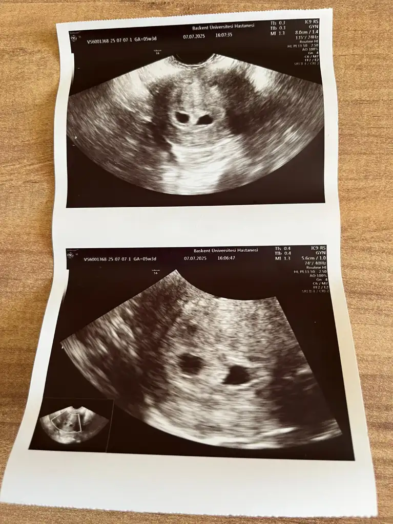 İçinde oluşum var. Kese güzel. Maşallah. 2 kayıptan sonra 3. Hamilelik benim. Keseyi görünce iyi gidip gitmeyeceğini anlıyor insan. Alttaki benim 5+3 tü. Solda görünenin iyi ilerleyeceği belliydi. Diğerini bir umut dedik ama. İçinde oluşum olmayabilirdi. Sizinki benim içi oluşan kesem gibi. İçinde oluşum gözüküyor.Sanki minik beyaz bi parlaklık var