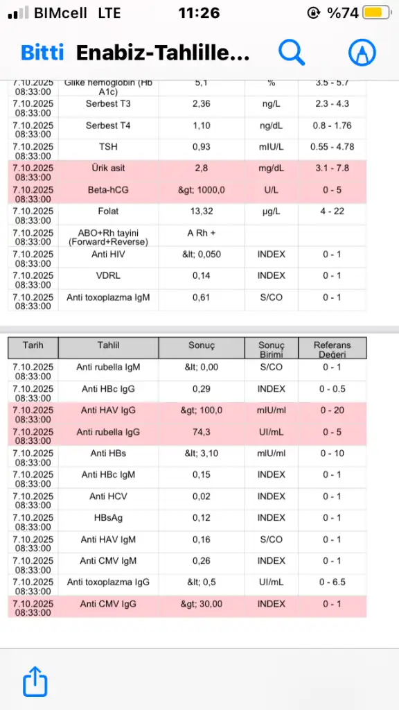 Hastanede ilk kan alımında ona da bakılmış. Doktor isterdsek bu testleri sağlık ocağında da verebileveğimizi söyledi. Demekki orda da bakılıyor toxoplazma ya