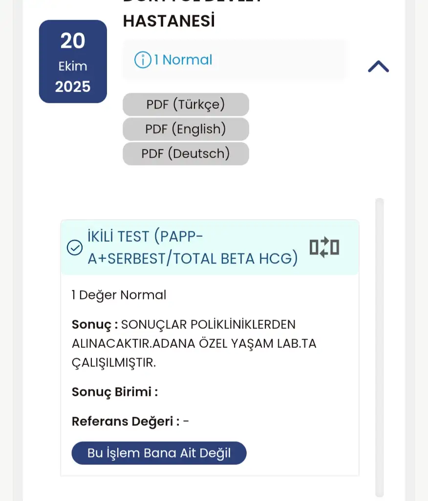 Kizlar birşey sorcam size.devlet hastanesindeki doktor ikili test için kan aldı bir hafta sonra çıkacak ama e nabizda böyle birşey var.sonuc çıkmış benmi goremiyorum demek anlayamadım yardımcı olurmusunuz