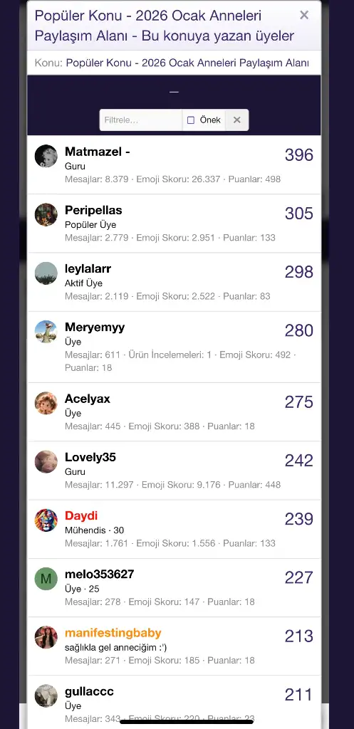 Evet yaa ahah. Bende mesela içimde kalan ukteden midir bilmem kızı olacak olanların mesajlarına yağdırıyorum emojileri ahahahahBenim ogluma hamile oldugum donemde de ocak annelerindeydim aralik yine cok aktifti hatta ocak ayindan birkac kisi araliga gitmisti