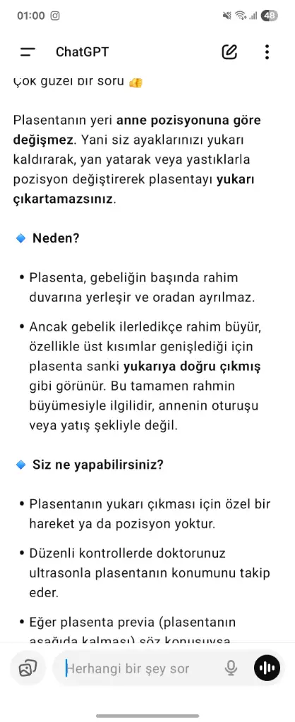 Doktoruma dikkat etmem gerekenleri sorduğumda tendir amaçlı bunları söyledi dikkatli olmakta fayda olduğunu düşünüyorumVe plesenta asla ayaklari dikerek yukari cikmaz