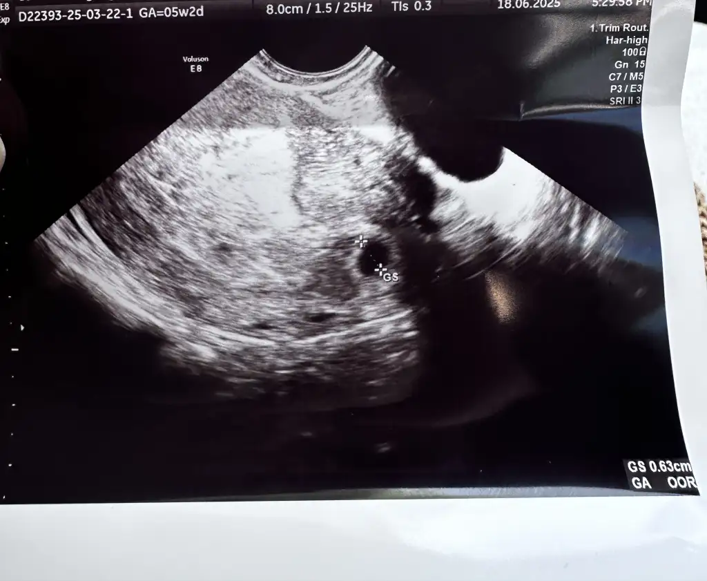 Bak benim foto da seninkinden küçük duruyor ama 8.89mm kesenin boyutu haftası da 5+5 dün gittim bende kalp atışını da duyduk şükür darısı sana canım bende kanama alanı olmadığı halde dün muayeneden sonra 3 4 damla pembe lekelenmem olduAy çok sevindim sizinki soldaymış benimki de sağdaumarım sağlıkla gelirler