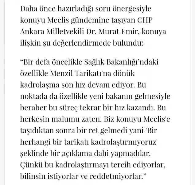 Hala daha inanamıyorum diğer cemaatler masum diyorlar. Kul hakkının yendiği yerde ne masumluğu. Eskiden fetoydu şimdi de menzil kadrolaşıyor herkes de bunun farkında. Hala cemaat savunuyorlar yazık bu ülkeye. Her dine her inanışa saygı duymayı bir türlü öğrenemediler. Herkes grup kurup kendini kayırma peşinde. Ben hakkımı ne bu hak yenen kurumlara ne de bunu savunanlara helal ediyorum.Maalesef sağlık bakanlığında ki ladrolaşma o kadar net ki söyleyecek söz yok gözler görüyor ama görmezden geliniyor. Düşünün ki bir ilin müdürü 10 defa değişşin bir iki yılda. Mantık nedir çözemedim ben. Gerçi kendi kurumumda sabah müdür yrd. Olarak gelip öğlen başka ile müdür olrak atanan müdürleri de gördüğüm için biraz kanıksama oldu bende.