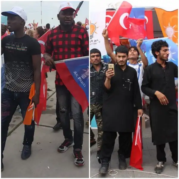 Çevre illerden insan toplama + nerede ne kadar mülteci varsa toplama + bedava otobüs + bedava döner :)yeni kapi yaziyorum miting alanini ama heryer öyle
