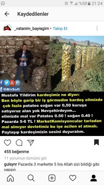 onu bugün izledim haberlerden, toplam üretim ve tüketimin %2 si ithal edilecek dendi.Bir önceki olduğunu nasıl anlıyorsunuz fotoğraf aratma yapılıyor sanırım .Birde video var ama çok küfürlü paylaşmam mümkün değil.Tarlalara saçılmış patateslerin videosu.Ama bir görsel daha