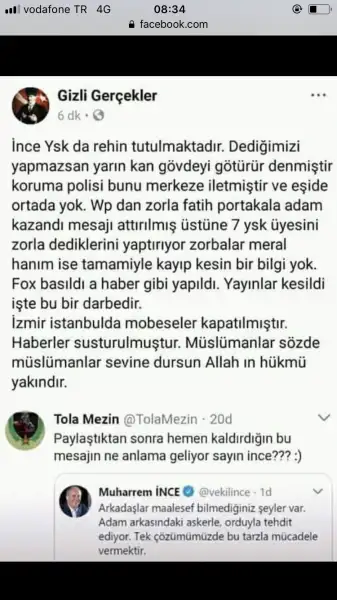 dün mv çıktı 3 kez konuşma yaptı tehdit olsa adam söylemez mikeşke bu kadar basit olsa ama çok soru işareti var beklemekten başka çare yok maalesef o kadar guven kalmadiki memlekette artık paranoyak olduk gercekten