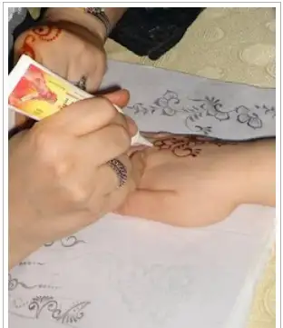 ben senin gibi düşünmüyorum, o şekiller bizim bildiğimiz kırmızı kına ile yapılıyor ve geleneklerimize çok da uzak değil. yorumumda belirttiğim gibi bir elime kına gecesi normal şekilde yakılacak, diğer elimin içine veya üstüne bu şekilde şekille yakılacak. bu şekillerin nasıl hiç güzel olmadığını düşünebiliyorsun? çirkin mi çizilmişler? ya da böyle kına yakılınca türk gelini gibi durmayacak mıyım?