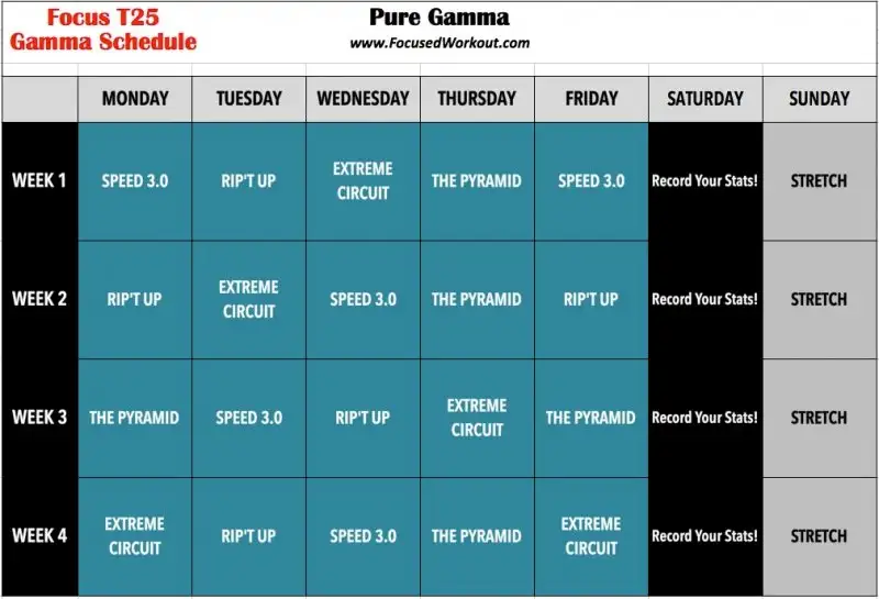 Kademeli şekilde ilerlenen 3 temel aşama ve her aşamanın içerisinde alt 5 videodan oluşuyor videoları ve uygulama programını internette bulabilirsiniz talep olursa buraya da koyabilirim toplama 14 hafta sürecek haftanın 5 günü t 25 videosu bir gün dinlenme ve bir günde esneme hareketleri şeklinde ilerleyen bir program .