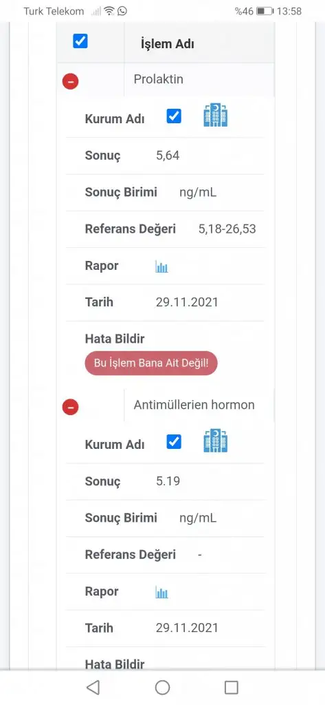 Prolaktin baya iyi bnce yüksek olmamalı çünkü. Amh sonucu için ne dedi doktorBen daha yeni tedaviye başladım yarın klomene başlıyorum hayırlısıyla.. Kızlar birşey sorcam dün hormon tahlili yaptırmıştım sonuçtan anlayan var mı acaba bakabilir misiniz? Nasıl çıkmış sizce ben anlamıyorum pek merek ediyorum.