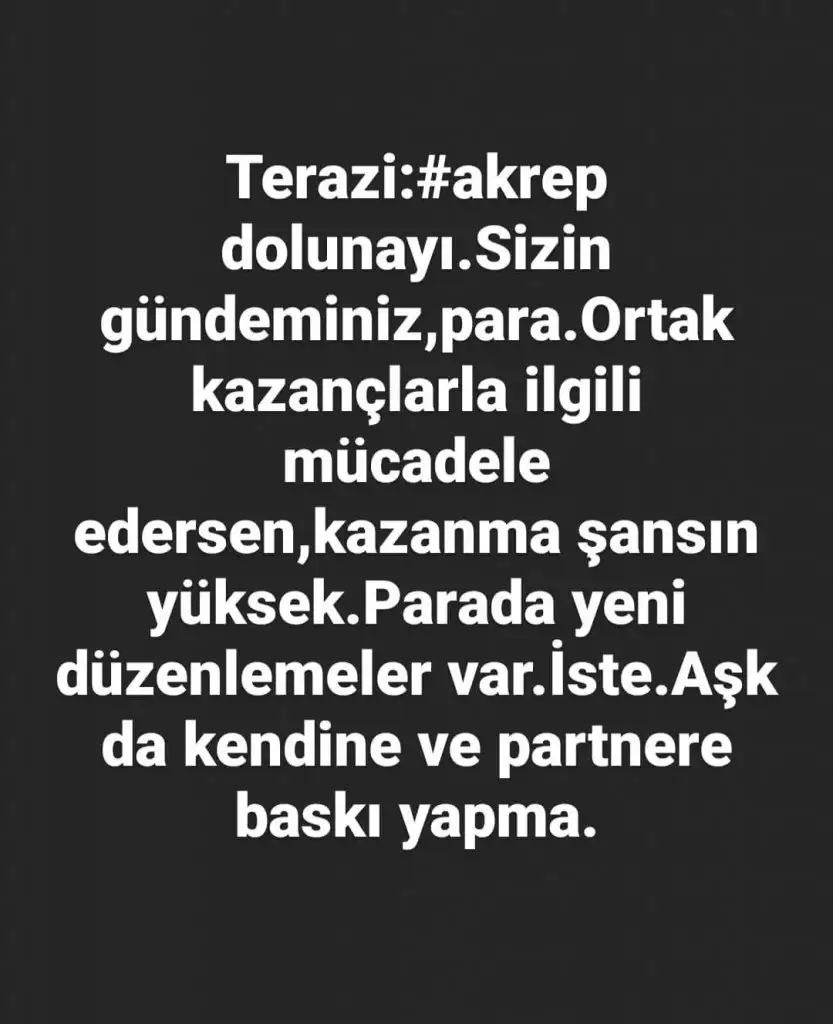 Evlilik, ikili ilişkiler, ortaklı işler sizi ruhsal olarak tamamlanmış hissettirecek alanlardır. Kendinizle alakalı neyi kabul edemiyorsunuz? İkili ilişkilerinizde memnun olmadığınız bir ‘’siz’’ var. Önce kendinizle uzlaşın, sonra karşınızdaki kişilerle iş birliği yapın. Cesaretle yeni adımlar atmaya, günlük yaşamınızı renklendirmeye gönüllü olmalısınız. Sezgilerinize teslim olduğunuz ölçüde yeni fırsatlar yakalamanız mümkün. Olumlu bir içsel akış gerçekleştirebilirseniz ilişkilerinizdeki sorunlar kendiliğinden çözülebilir. Aşkta da parada da uyum, denge ve uzlaşı kazanır; kazanan olmayı seçin.