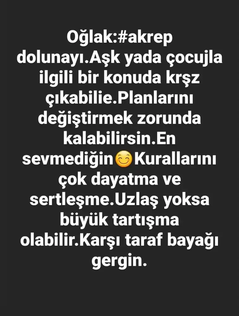 26 Nisan'da Akrep burcunda meydana gelecek Dolunay'da aşk ve arkadaşlıklar gündeminizi oluşturuyor sevgili Oğlak burçları. Özellikle ilişkilerde fikir ayrılıkları, zıtlaşmalar görülebilir, karşınızdakini anlamakta güçlük çekebilirsiniz. Kariyerde ve parasal konularda stresiniz artıyor. Bazı girişimlerinizin netlik kazanmaması ve sorumluluklarınızın artması nedeniyle olumsuz düşünebilirsiniz. Fakat güzel günler kapıda!