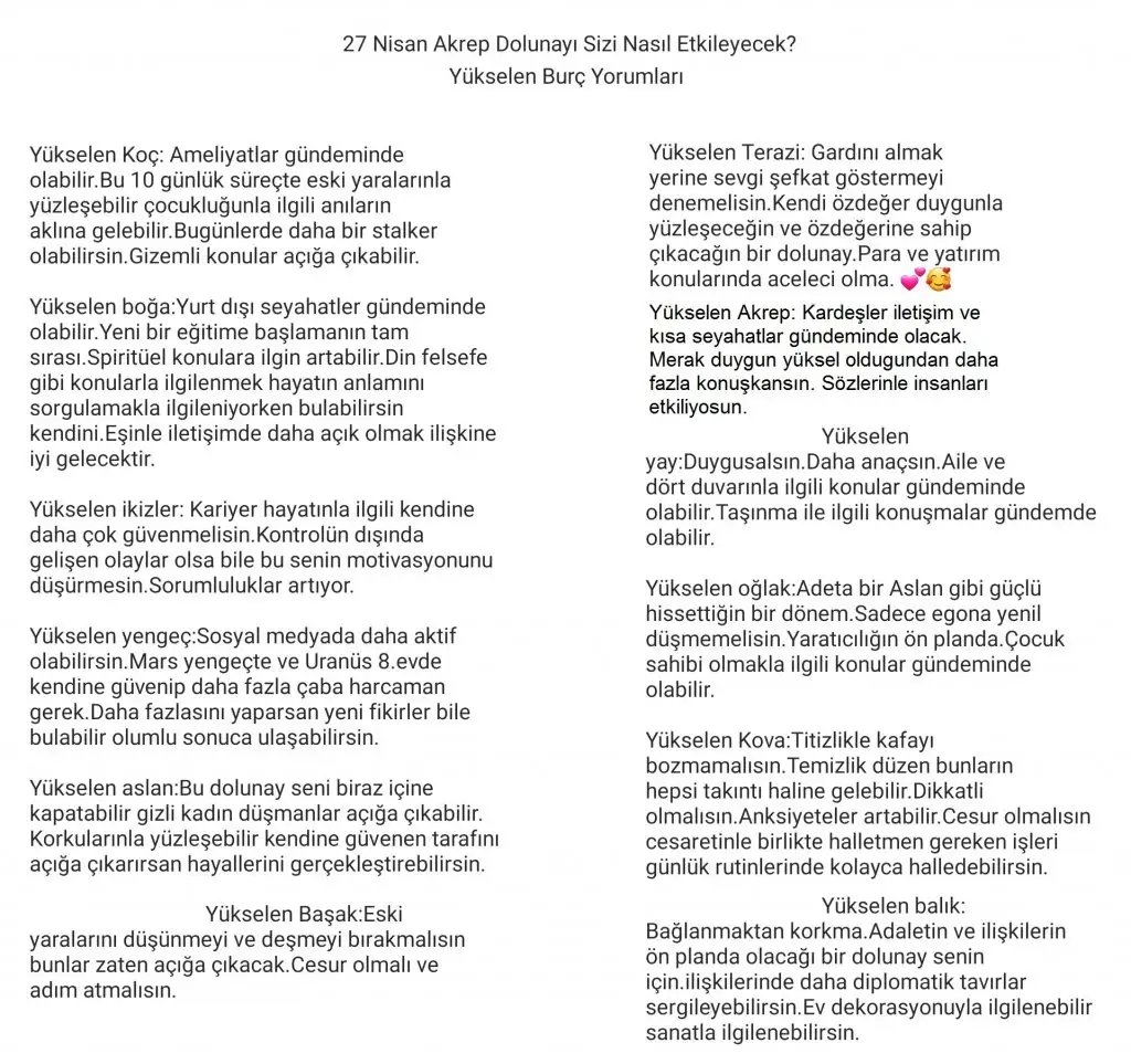 27 Nisan 2021 Akrep Dolunayı - Burçlara etkileri