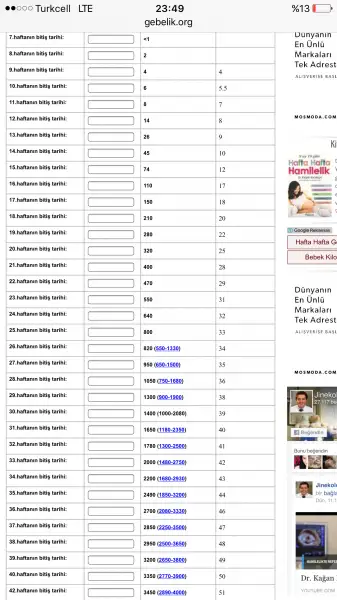 Benim dikkate aldığım boy kilo ölçümü bu. Ünlü bir jinekolog tarafından hazırlanmışAz sanki niye bu kadar az acaba