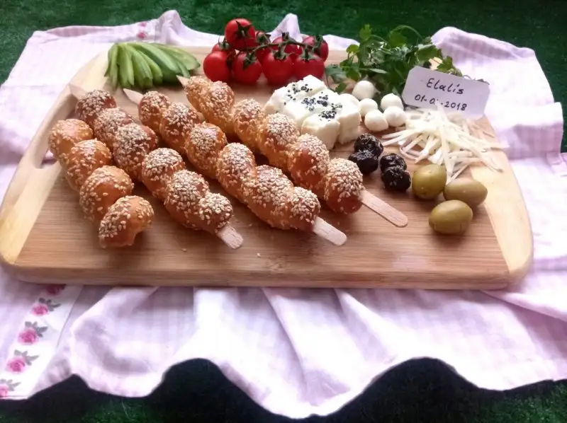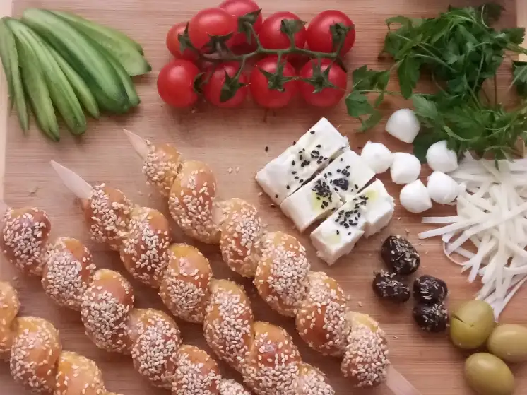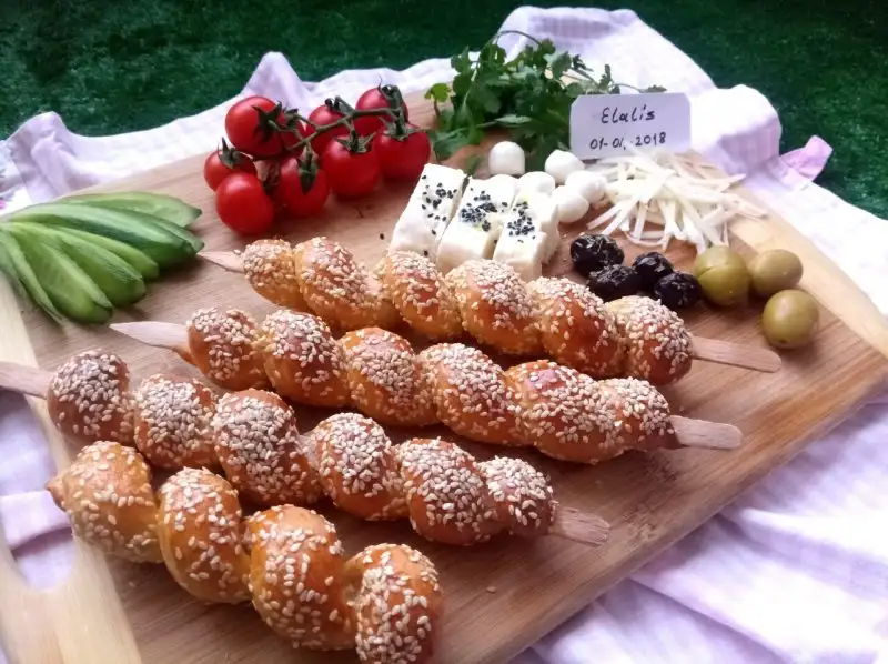 Ben pişirme işlemi için dikdörtgen kalıp kullanıyorum. Çubukların boyuna tam geliyor. Tüm bezeler çubuğa doladıktan sonra üzerine yumurta sarısı sürüp, susam döküyorum çevire çevire.