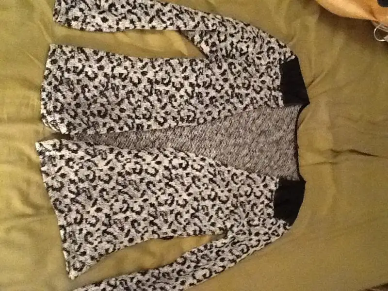 9-Siyah beyaz leoparlı omzu derili trendyoldan alındı.1kere giyildi. Fiyat:25 tl ( önü açık giyildiğinden her bedene olur)