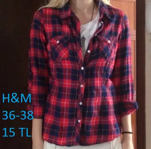 8-Kareli kırmızı H&m gömlek.fiyat:15 tl(small ve mediuma uygun)