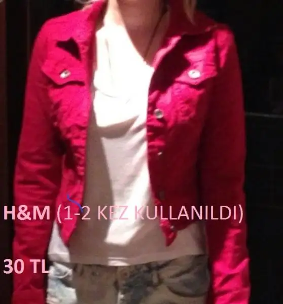 10-h&m kırmızı kısa kot ceket.1-2 kez kullanıldı. Fiyat:30 tl (small)