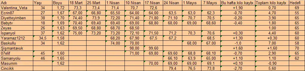 bu haftanın birincisi -2,70 kilo ile C cincikk arkadaşımızoldu tebrik ederim valla harika vermiş