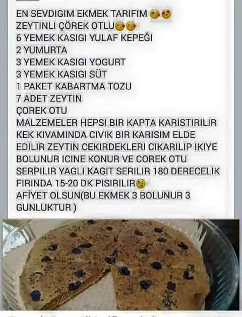 süper mutlaka deniycemTabiki kek pogaca pasta ekmek simdi tek tek yazıcam tarifleri. .ax kalmadan zayifalmak bu olsa gerek..ama mutlak kepek yulaf karisimi lazim..kepek yulaf degil karisimi olucak kizlar.m