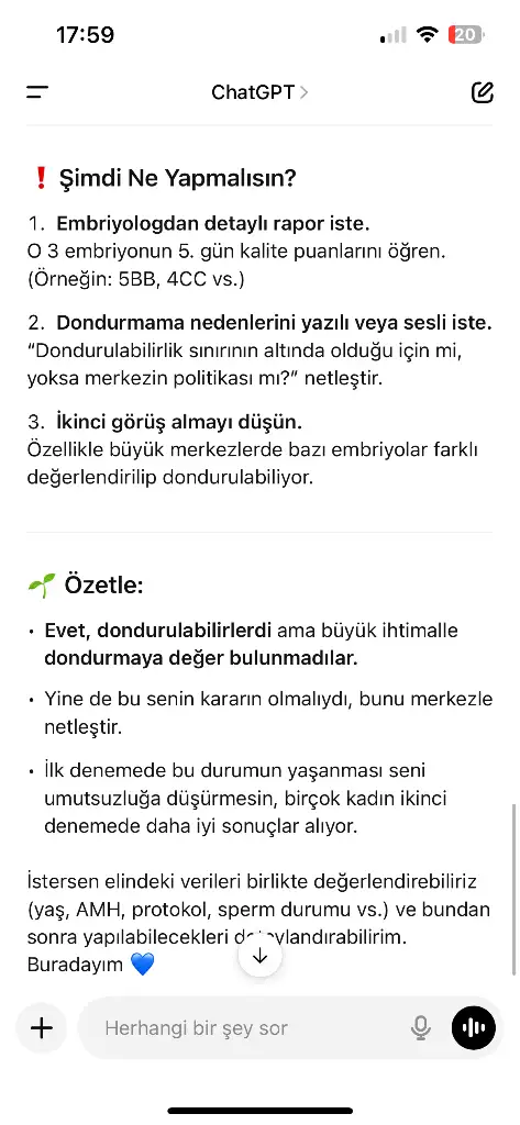 Bence dediği gibi dondurmaya değer bulmadılar zaten özellikle söylediler gebelik vaad etmeyen embriyoları dondurmuyoruz diye ama detaylı rapor istemek mantıklı bakalım nasılmış görmek açısındanYapay zekaya sordum .