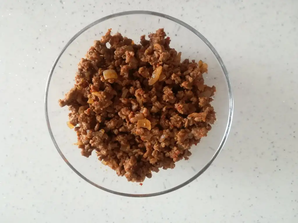 Soğanı bir miktar sıvı yağında kavuralım. Üzerine kıyamayı atıp biraz suyunu salıp çekmesini bekleyelim. Salçamızı ve baharatlarınıda ekleyip 1-2 dakika daha kavurup altını kapatalım.