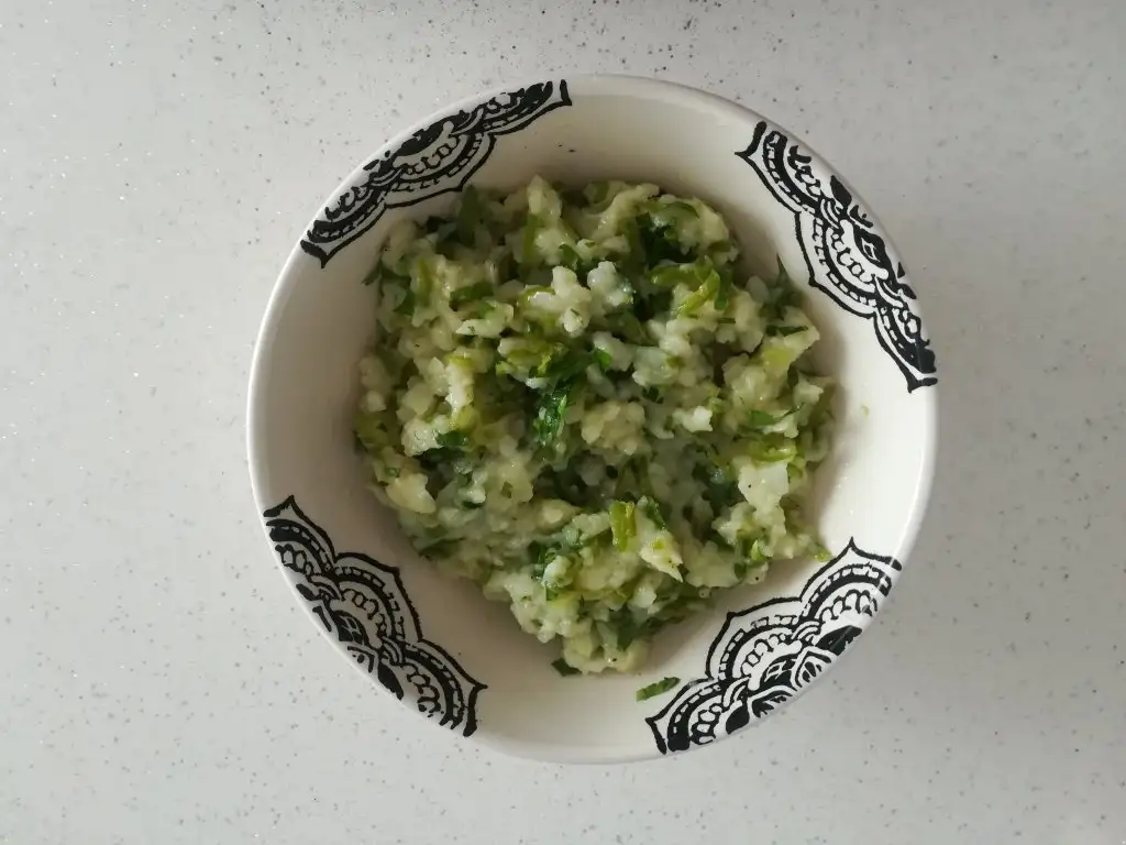 Patatesleri haşlayıp, ezelim. Sıvıyağında köy biberini doğrayıp kavuralım. En son tuzunu biraz karabiberi ve maydonozunu da ekleyip, karıştıralım.