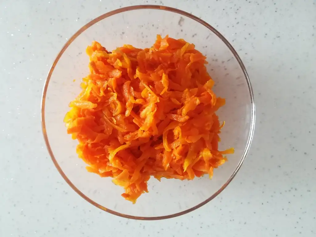 Havuçları rendeleyip, zeytinyağında suyunu salıp çekene kadar kavuralım. Yaklaşık 10dakika. Soğuyunca tuzunu kontrollü şekilde atıp karıştıralım.