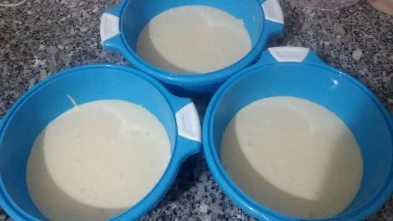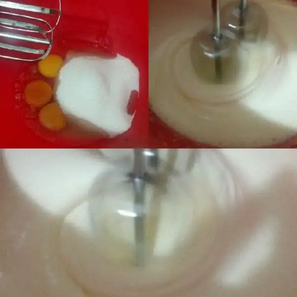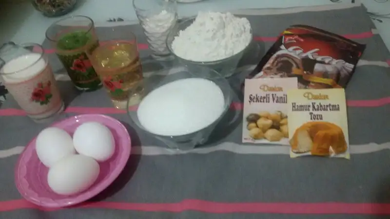 Ilk olarak 3 yumurta ve toz şekeri köpürünceye kadar çırpıyoruz. Sonra sütü ve sıvıyağ ekleyip cirpmaya devam ediyoruz.