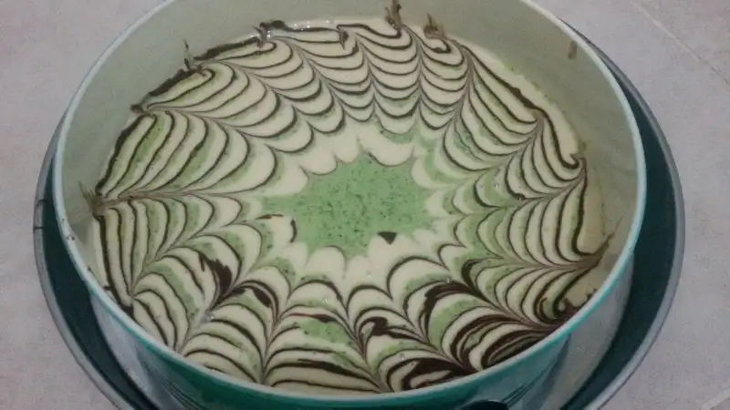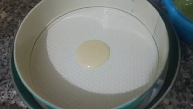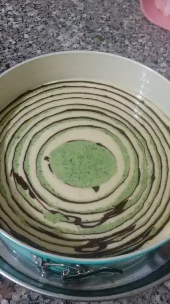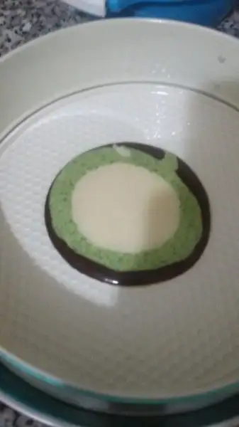 Kalıbın ortasına beyaz,kakaolu ve ıspanaklı şekilde koyuyoruz. Sıralama aynı şekilde bitene kadar devam ediyor.