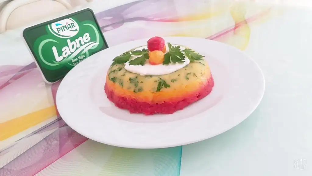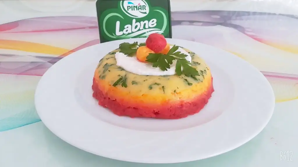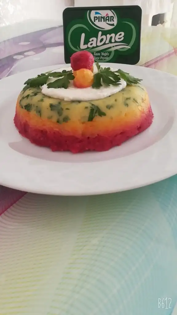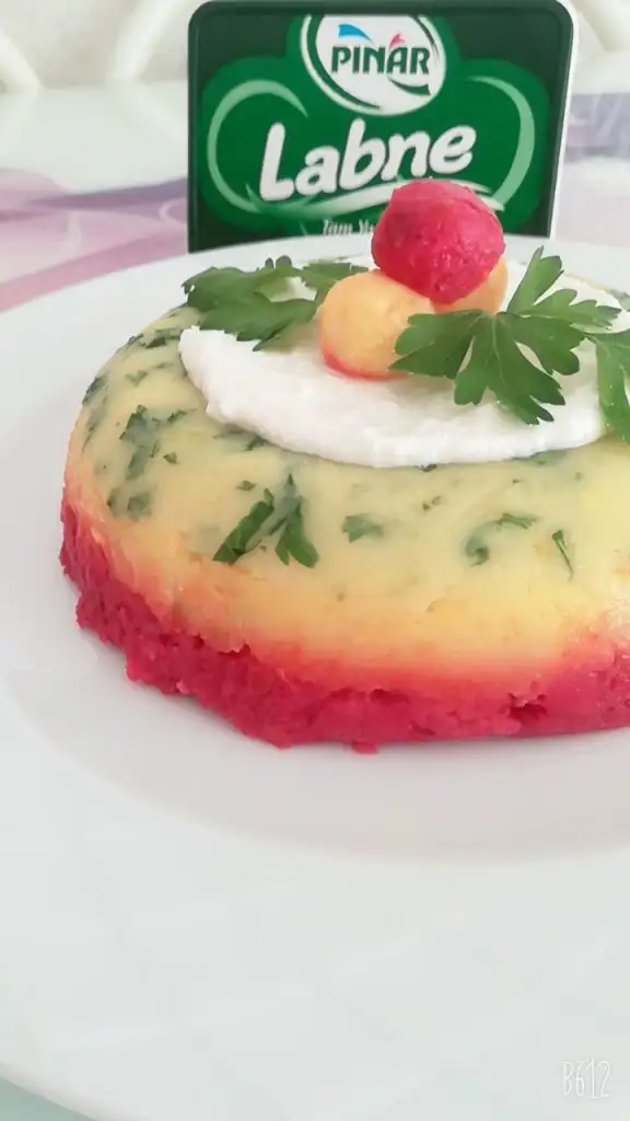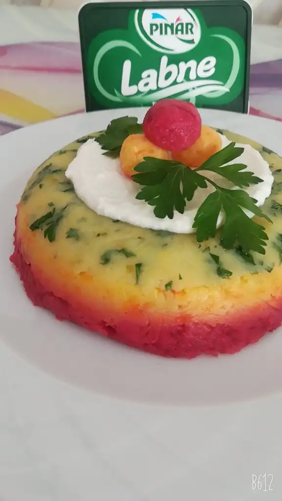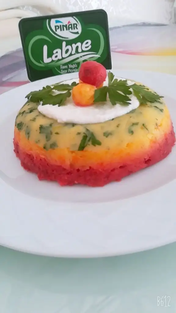 üçüncü böldüğümüzün içine yine limon suyu, tuz ve çiğ pancar ise haşlayıp küçük rende ile rendeleyin eğer turşu ise direk rendeleyin. (Suyunu eklemeyin cıvık olur.)