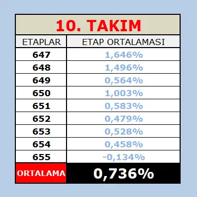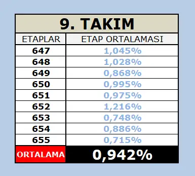 9.takım neymiş yaaa ben şokbelki hevese gelirsiniz diye 8 haftalik gecmis performans doneminde bizimle beraber hic nota almayan diger 2 takimin da analizlerini ekliyorum.