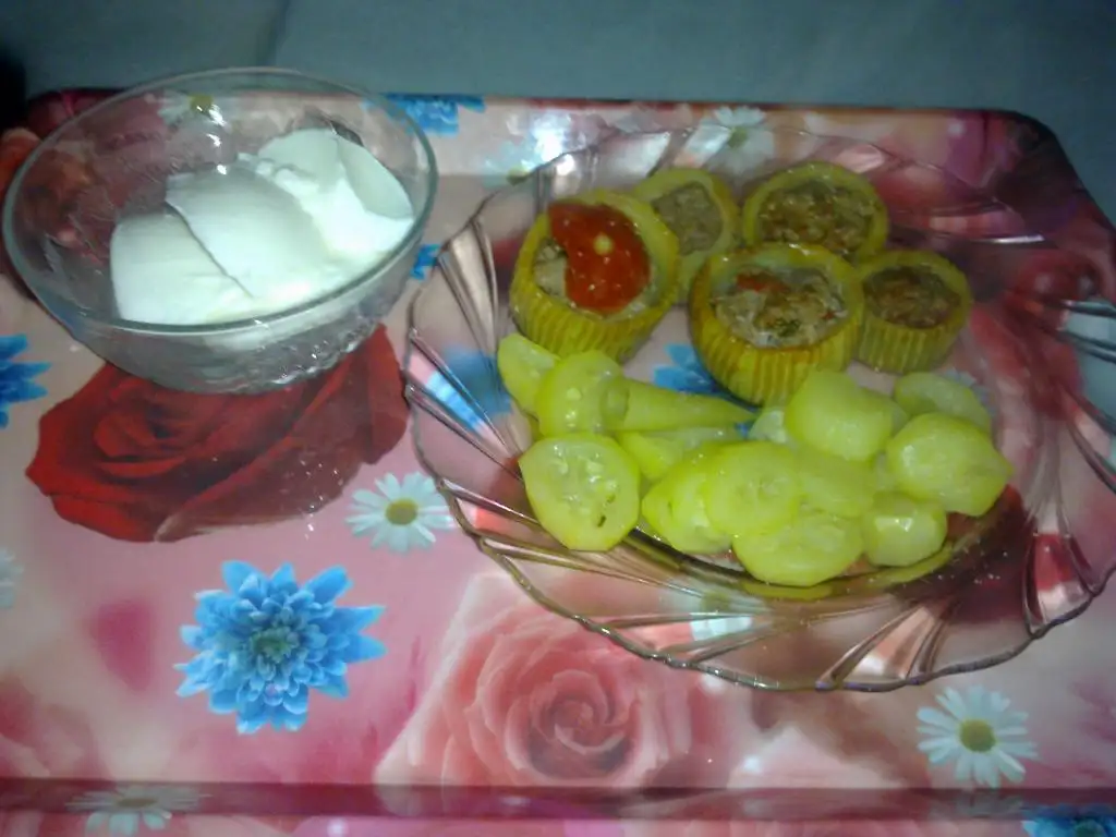 Evet kızlar akşam yemeğim, çok açtım doldurdum ama dolmaları ve 2 kaşık yoğurt yedim sadece, haşlanmış kabakları yiyemedim. Haydiyin size de afiyet olsun.