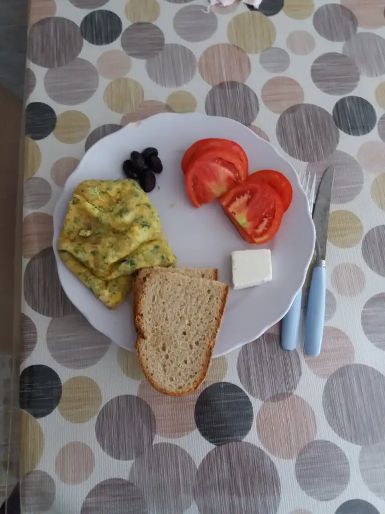 Sabah kıyma kavurma yanında 2 dilim ekmek muz domates