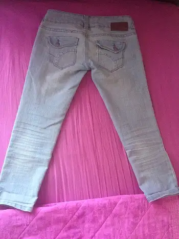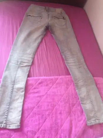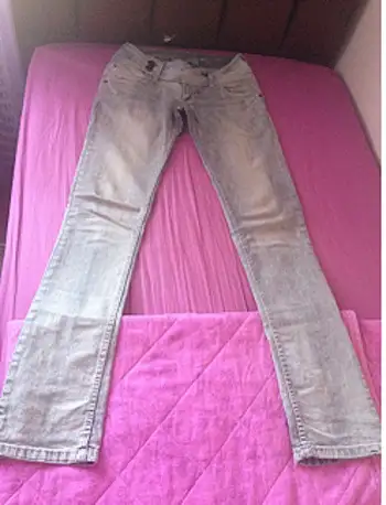 stradivarious marka sıfırdan farksız açık gri renkte kot pantolon.L beden yazıyo ama medium a daha uygun olur diye düşünüyorum.boyu uzundur belirtiyim isteyene ölçülerini de yazabilirim