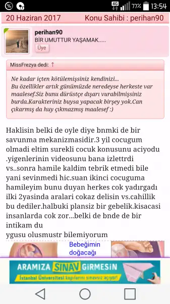 Bir uzman danismanizi öneririm. Erken destek almak sorunlarınızı ciddi anlamda azaltirMerhaba kizlar 7 yillik evliyim 3 yasinda bir oglum var.artik onun bize buyuk bir imtihan oldugunu dsnyrm.evde surekli onun yuzunden gerginlik var yemege oturdugumuz an sofradakileri firlatir asla yemek yemez.esim artik cinnet geçiriyo.parka indryrz mesela cocuklari gorunce kndini yerlere atiyo.asla hicbir cocukla oynamaz.bi musafirlige gitsek kapidan girince baslar aglamaya gidene kadar..acaba asosyalmi diye dusunduk kardesi olursa oynar vs diye .1aya dogum yapcm.ama bu cocuk farkli artik cildiricam esimle bile aramuz bozuldu.surekli kavga cikiyo napcam bilmiyorm