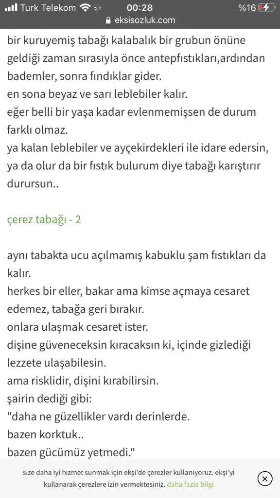 Bu konuda “kuru yemiş tabağı” diye bir yazı var. Okudunuz mu bilmem 😄
