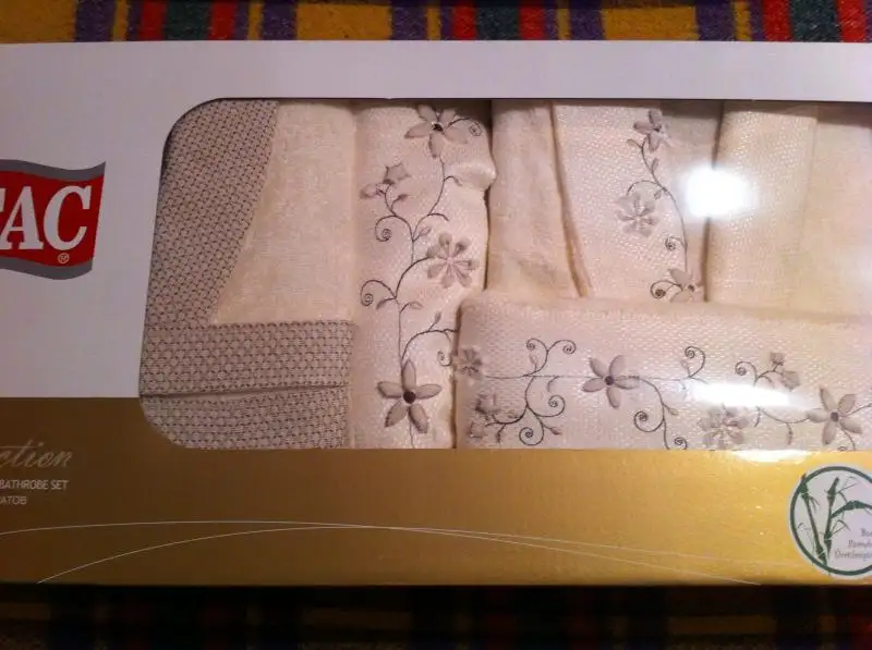 canım benimki uzun bileklere kadar içinde havlu terlik var baş havlusu ayak havlu komple bı takım 299 tl ye almıstım ben ve evet dediğin gibi çok agır ben evime getrtniştim kendim taşımadım....