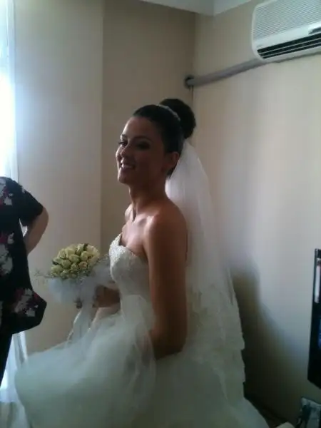 Bu da kuzenımBen cektım bunları her acıdan gelinlik böyle canım.Hosuma gıttı duvagı da cıcegıde.Belındekı kusakta yavruagzıydı.Eşi ayakkabı imalatçısı.Rahat oynayayım diye anane ayakkabısı yaptırttım eşime dedı Hafif topuklu kapalı bir ayakkabıydı.Ama bütün aksam zıp zıp zıpladı