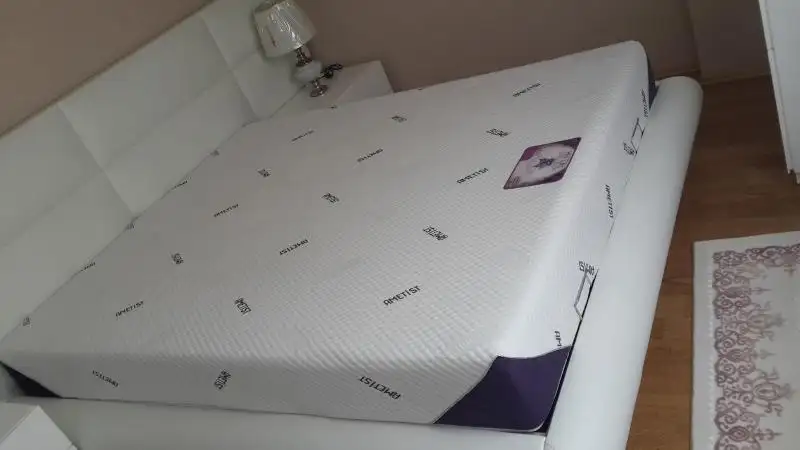 bizde bugun aldık yatağımızı canım ametist relax aldık bizimkide yaysız. hemen de getirdiler koyduk çok hoşuma gitti. benim en büyük sorunum yatağın çok kalın olmamasıydı, yaysız olunca yatağın kalınlığı da inceldi çok iyi oldu bizim için. çok daha rahat bugun nişanlım abajurlerin kablolarını bağlarken denedim bol bolYatağım bu, nişanlım üzerine bevresim örtmeyelim bence böyle de güzel dedi Yatak da gelince tamamlanmış oldu yatak odam