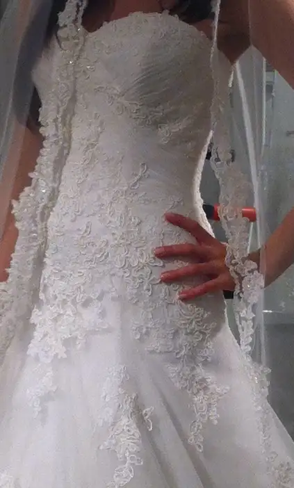 Bu arada gördüğünüz tüm gelinlikler 38 beden yani benim bedenim değil, hepsi bana büyük. Arkadan 3 ayrı yerden kelepçelediler.