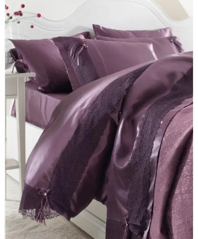 evetttt ben nevresimlerimi paylaşayım sizlerle karaca homedan aldım ikisini de:)Aslında mürdüm rengi saten takıma görünce aşık olmuştum sadece onu alcaktım bunu görünce dayanamadım.Mürdüm rengi saten takımda hem nevresim hem pike var 4 yastıklı.Örgü battaniyeli takımda battaniye ve nevresim takımı var o da dört yastıklı.Fakat resimdekinden renkleri biraz farklı.Çarşafı ve 2 yastığı sütlü kahve.Pembe ve sütlü kahve kombine edilmiş yani.O rengini nette bulamadığım için bunu koydum:)daha netten çok şey begeniyorum ama kararsız bir insanım ben yaa:)