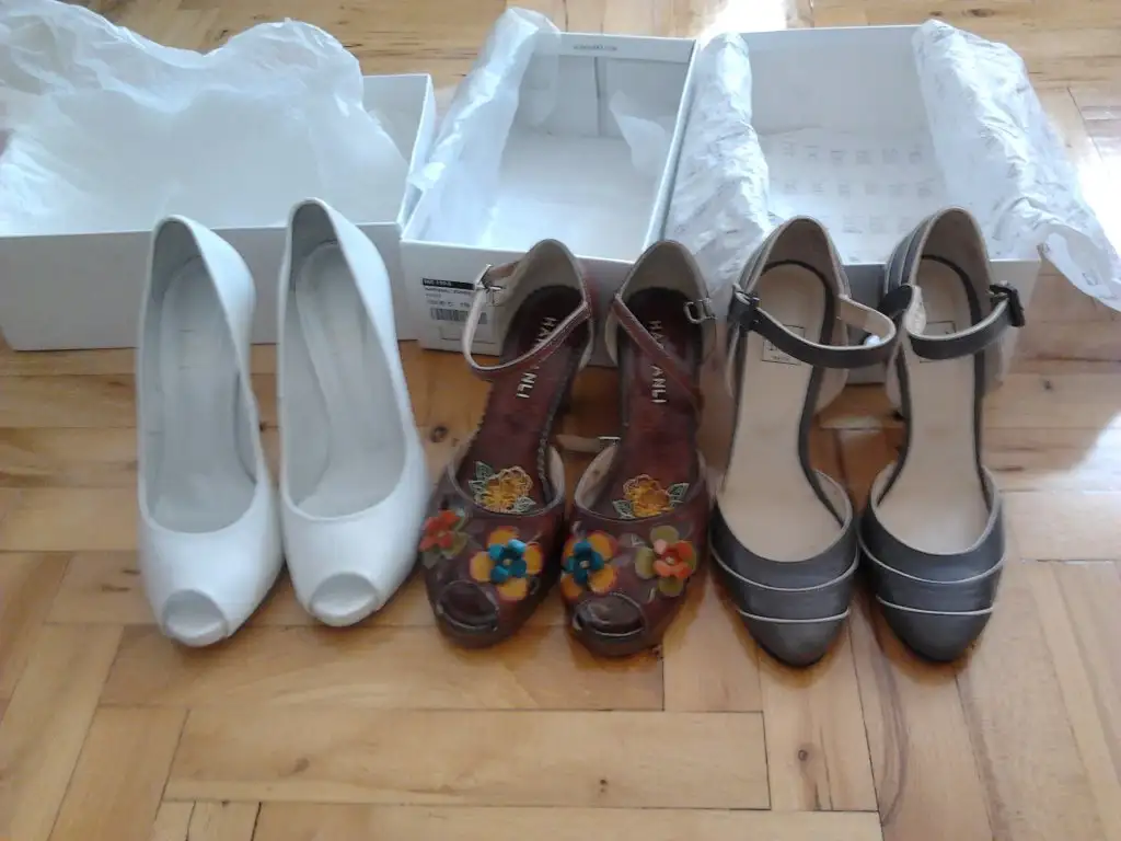 Beyaz ve Gri ayakkabı hiç giyilmemiştir İNCİ MARKALIDIR 20 şer tl, Harmanlı ayakkabı ise 3 kere giyilmiş 30 tldir. 3 ayakkabı toplu alımda50 tl dir