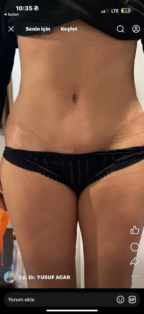 Doktorum aşırı tatlı, tam bir ponçik ve çok sempatik. Karın kısmında çok güzel dikiş atmış, baktıkça moralim yükseliyor, çok mutlu oluyorum. Çirkin dikişlerden çok çektim daha önce